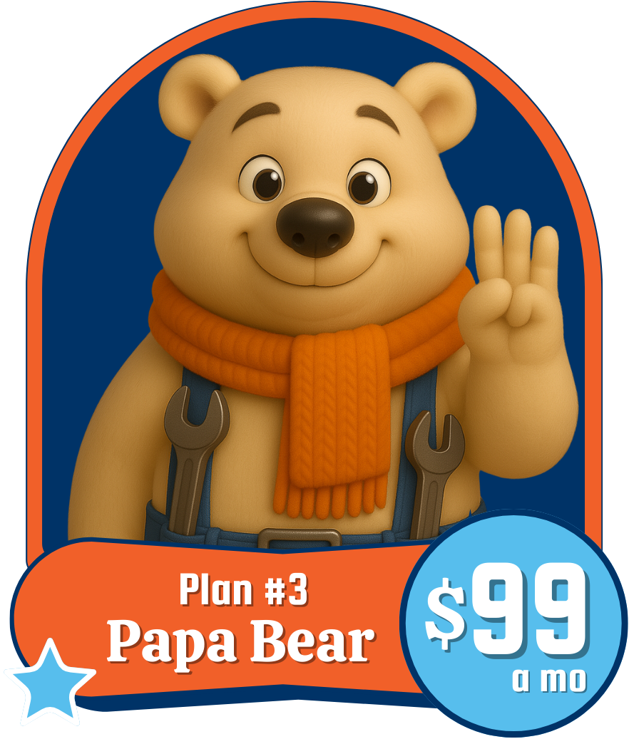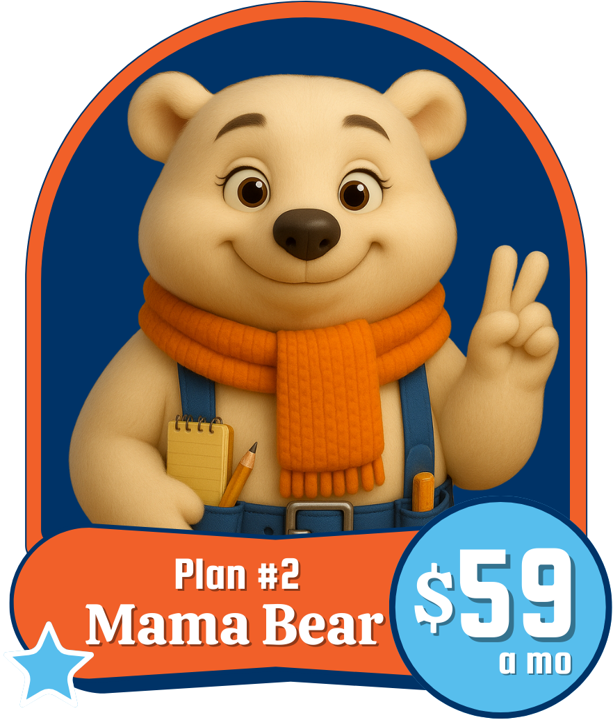 Includes everything from BabyBear and MamaBear plan plus: